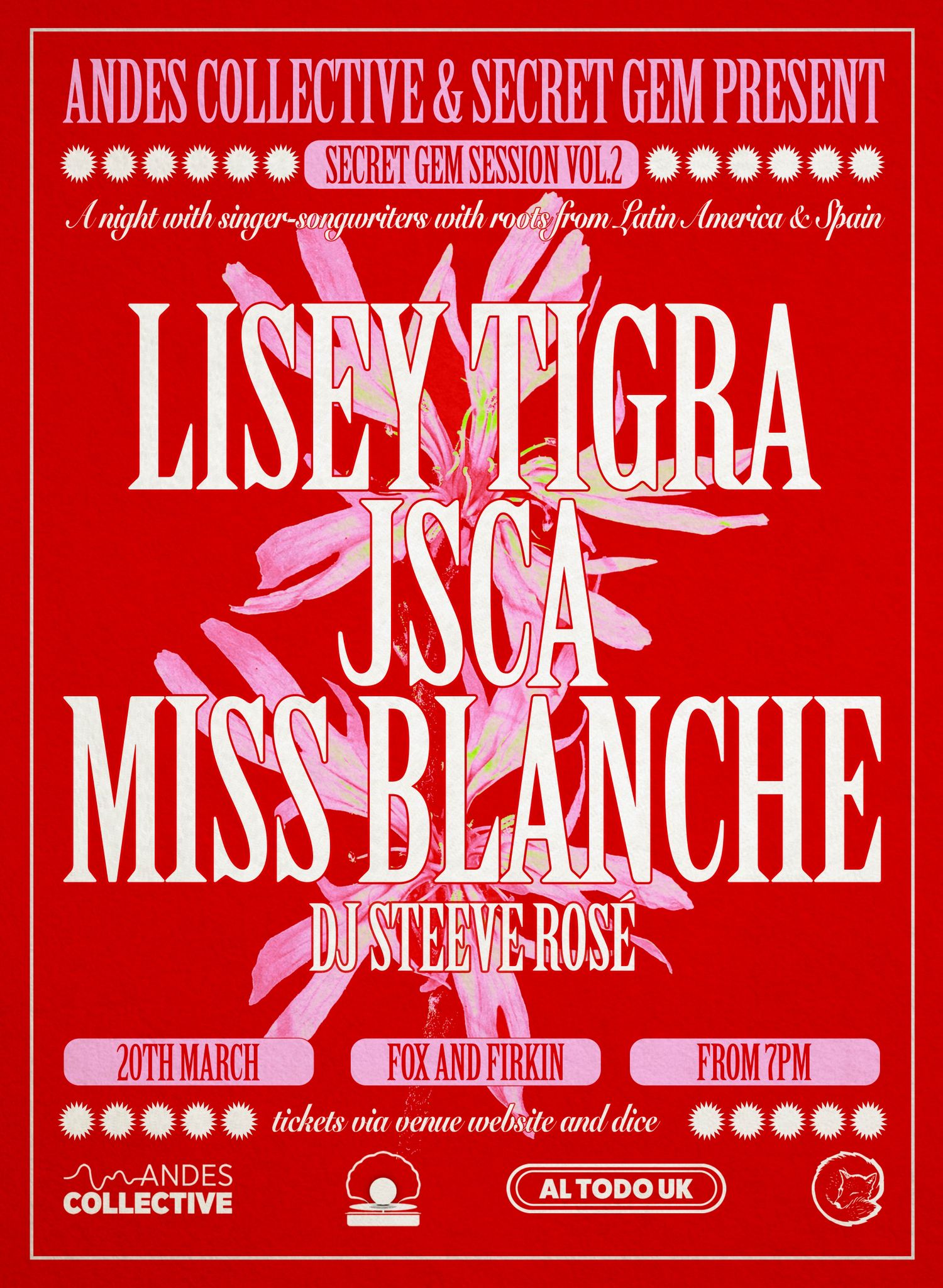 Andes Collective & Secret Gem lands at Fox & Firkin in Lewisham on Friday with Secret Gem Session Vol. 2, drawing together three singer-songwriters with roots in Spain and Latin America for a bill that moves across R&B, cumbia, Latin pop and reggaetón.